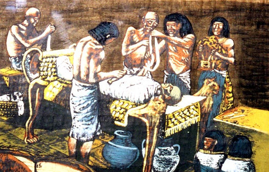 В Древнем Египте для бальзамирования применялись душистые вещества — бальзамы (отсюда название процедуры).